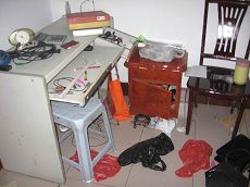 附近的居民说,七月十日早晨5点就开始有人监视,8点左右楼下就来了挺多的警车,还有消防车,把整个楼都围了起来。9点左右,两辆消防车分别从南北阳台驾云梯到六楼,打碎玻璃,撬坏门窗,强行入室,抄家的同时,把何益兴、张月芹夫妇两个带到了路北分局。随后恶警又绑架了正在上班的张月芹小女儿何艳及女婿孙锋利。