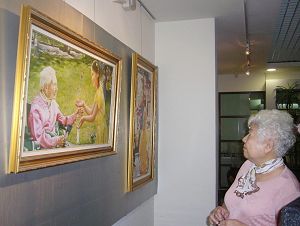 刚从国立台北艺术大学音乐系退休的知名声乐教育家唐镇,近日参观正在士林公民会馆展出的「真善忍国际美术巡回展览」,当她看到中共迫害法轮功学员的画作时,忍不住轻轻槌着胸说:「好残忍!好残忍!」知名声乐教育家唐镇赞叹,每一幅画都能传递修炼人「善」的信息,让人看了很感动。