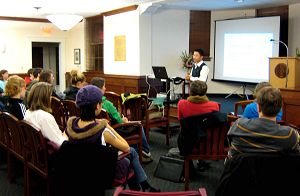 二零零八年十一月十三日晚,曾亲历中共迫害的法轮功学员黄奎应邀在美国俄亥俄州海勒姆学院做了题为“中共对法轮功的迫害及中国人权现状”的演讲,向该校师生讲述什么是法轮功,以及法轮功在世界各地受到欢迎,洪传八十多个国家和地区;不过在中国,中共邪党却残酷迫害法轮功学员的事实。