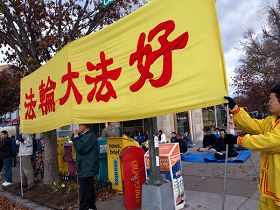 二零零八年十一月十四日下午,胡锦涛即将前往中美洲访问之际,法轮功学员来到中国驻哥斯达黎加使馆前,呼吁制止中共迫害法轮功。