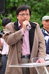 ![]() 集会主持人亚洲大学教授侯念祖发言时强调,退出中共组织是和平解体中共的唯一方法,中共解体两岸和平才能真正到来。 |