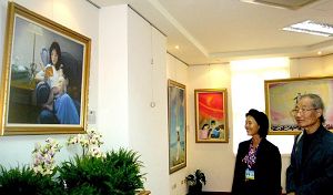 台湾画坛重量级艺术家朱为白,在好朋友的邀请下远从台北县金山开车到士林公民会馆欣赏「真善忍国际美术巡回展览」。