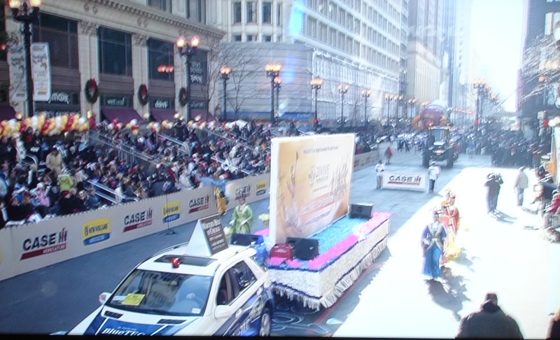![]() 美中法轮大法学会在二零零八年十一月二十七日芝加哥感恩节游行中展现神韵宣传车(WGN电视台直播画面) |