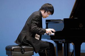 首届钢琴金奖获奖者林易在决赛中的演奏