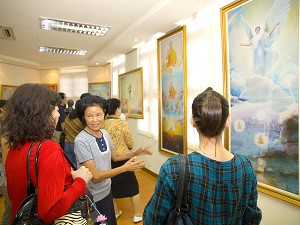 西人高先生是一个跨国企业的老板,对法轮功有初浅的认识,趁着业务考察之便,特别前来参观,他告诉导览人员,这是一个不寻常的展览,具有国际水准,请致上他最高的敬意给这些了不起的画家们。高先生表示印象最深刻的是作品《佛像》,他能感受到,画家对法轮功创始人李洪志先生那种最崇高的敬意。