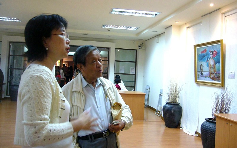 因为朋友介绍,戴雪卿开始阅读一些法轮功的书籍,她发现这是一个教人做好人的团体,美展有很多作品也是在传递“善”的信息,大家都来支持法轮功,整个社会都有善念,都是正向的,社会就会是祥和的。
