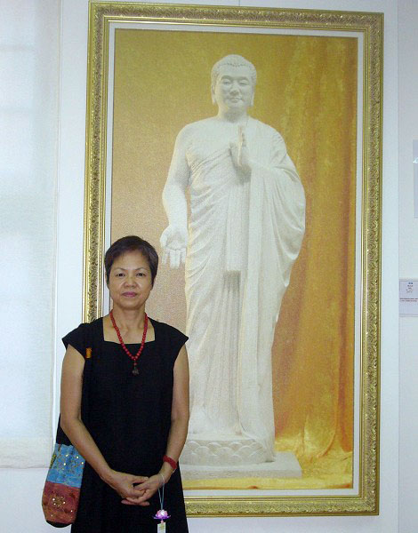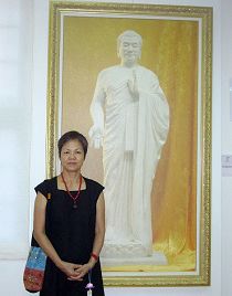 前龙门国中校长戴雪卿参观美展,第一眼看到张昆仑的《佛像》时,心里就有说不出的喜欢。她说,《佛像》庄严慈悲,洁白的雕塑材质,不但让人感觉很舒服,散发出来的祥和之气更是这个纷扰社会迫切需要的。她认为陈肖平的画作《天人合一》让人感觉很宁静,欣赏这幅画,人的情绪是平和的、健康的。张昆仑的《悲喜泪》描述的是“善恶有报”,行善者上天,行恶者下地狱,戴雪卿对画作表现出的宇宙大淘汰感到很震惊。她很高兴自己能看到这个画展,神佛慈悲,把宇宙永恒的真理告诉了世人。