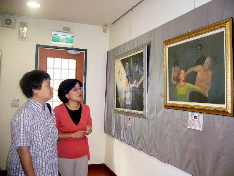在芦洲麦当劳打工的几位同学利用休假,相偕到士林公民会馆观看美展,看到揭露中共迫害学员的画作时,纷纷提问:“为什么中共要镇压法轮功?”“人与人应该互相尊重,画家都是修炼人,做好人,中共这样伤害人,没有把人当人看,很可恶。”导览人员告诉他们,法轮功教人做好人,教人向善,所以修炼的人愈来愈多。但是,反自然、反天理、反人性,以斗争起家的中共邪党却不惜动用国家机器对法轮功展开残酷的镇压。
