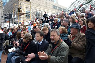 主持人表示感谢法轮功的同时,也向观众介绍将在明年二月十一日至十五日在肯尼迪中心歌剧院上演的神韵晚会。