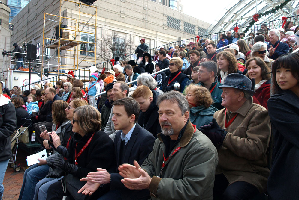 今年感恩节过后,天气异常暖和,观看游行的人数是过去十八年来最多的。除了当地人以外,还有很多各族裔民众从大华府各地慕名而来,游行路线沿途的街道两旁挤得水泄不通。