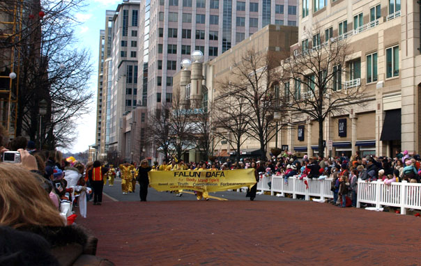 【明慧网二零零八年十一月三十日】每年感恩节过后的星期五,美国首都华盛顿近郊维吉尼亚州雷斯顿镇(Reston Town Center, VA)都会举办一年一度的游行庆祝活动,这一传统如今已经延续了十八年。二零零八年十一月二十八日,法轮功学员再次应邀参加了雷斯顿感恩节游行,也是七十多个游行团体中的唯一一个华人团体。