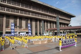 二零零八年十一月四日,中国大陆海协会会长陈云林率谈判代表团抵达台湾的翌日,近三千名法轮功学员在台北自由广场前炼功,拉出了「中共邪灵的根都拔出来了」、「迎接中共邪党解体的二零零八年」、「法轮大法好」等巨型横幅,呼吁解体中共、制止迫害。