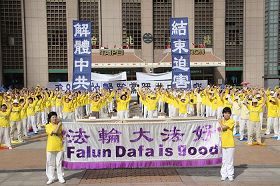 ![]() 三千多名台湾法轮功学员在台北自由广场前炼功,要求解体中共,停止迫害。 |