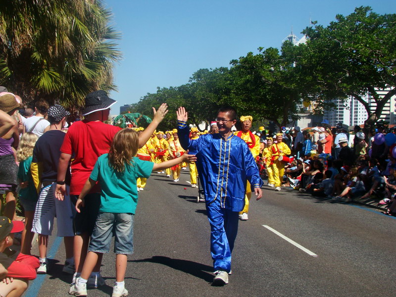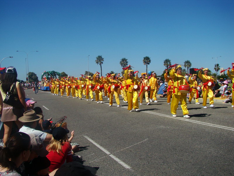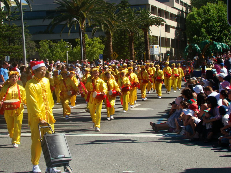 西澳圣诞节大游行(RAC Channel 7 Christmas Pageant)是一个老少皆宜的家庭娱乐节目。游行的当天晴空万里,气温凉爽。在大约一个小时的游行路上,热情的人们向法轮功学员们挥手与鼓掌致意。许多在现场的华人也微笑着向法轮功学员们挥手致意。
