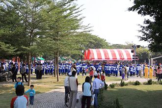 ![]() 游行途中许乡长招呼乡公所官员来和天国乐团合照 |