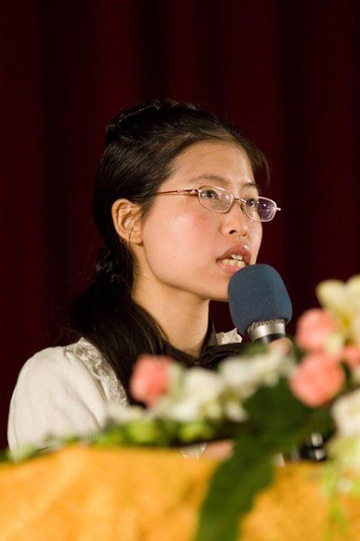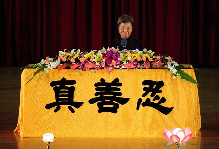 再过几个月就将步入八十岁的学员林桂,令全场惊呼。精神饱满、面容年轻,一点也不象快八十岁的老年人。未修炼前长期咳嗽、眼疾和高血压,修炼后不管严寒酷暑,每天走三十几分钟的路到炼功点炼功,八年来不曾滴一滴眼药水,没吃一颗药。她从小受日本教育,不识中文字,在学法初期,她在笔记本上用日文一个字一个字的拼音,用了二个月看完第一遍。现在二天能看完一遍《转法轮》。