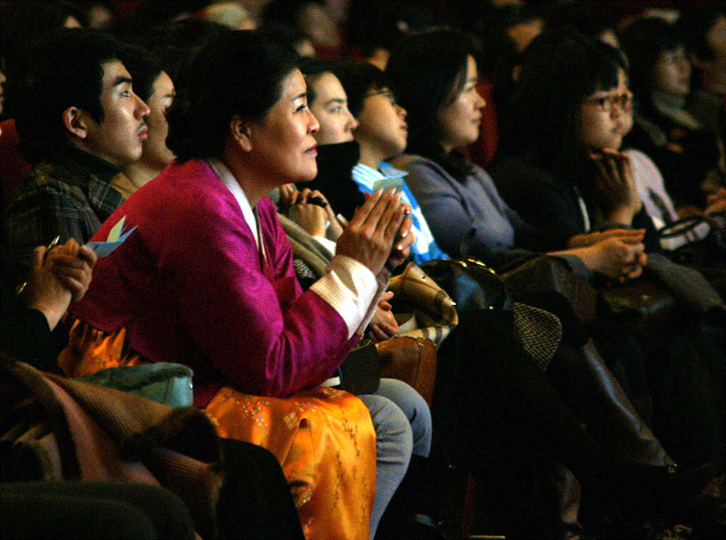 同样位于亚洲的韩国,更殷切盼望神韵再度莅临,据媒体报导,韩国著名低音演唱家辛圭坤,今年二月二十四日观赏了神韵演出后激动的说:“演出让我感到好象暂时离开尘世,不知今生是否还能看到如此卓越的演出。”