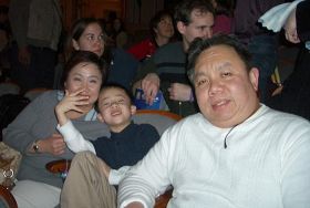 梅格·李(Mieg Lie)是从马来西亚移民到美国的华侨,他带了太太和孩子全家欣赏演出。他们表示观看晚会非常享受,也学到了很多关于中国文化和历史的知识,六岁的儿子提莫(Timothy)兴奋的说孙悟空的节目是他的最爱。三口之家高兴的让记者拍照。
