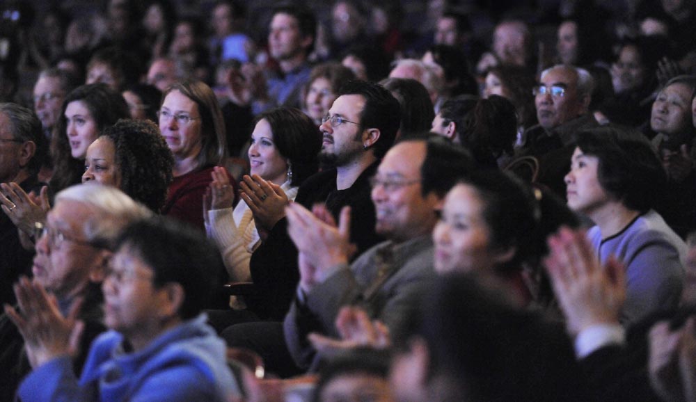 演出结束后,全体演员谢幕时,观众自发集体起立,长时间报以热烈的掌声。