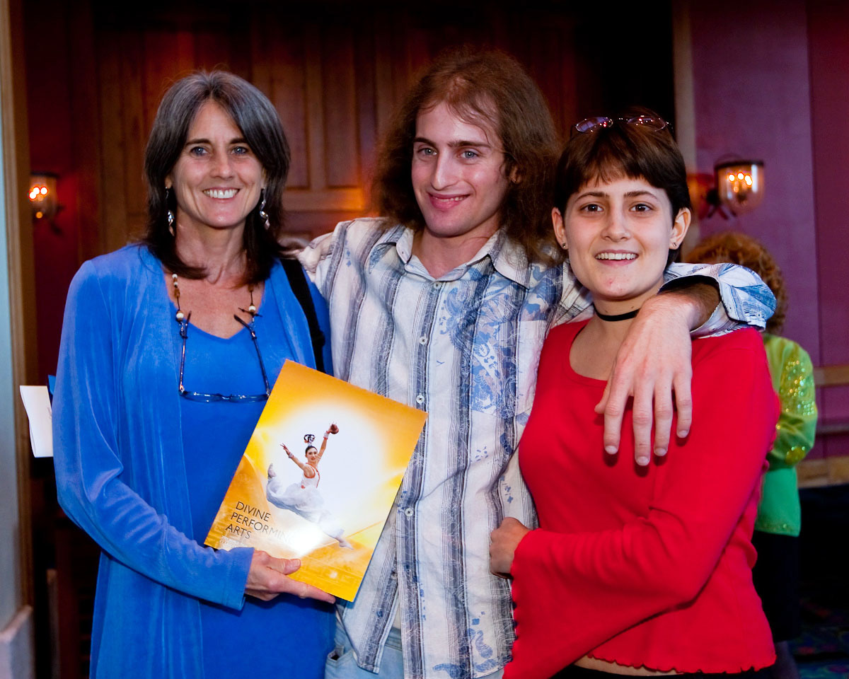 【明慧网二零零八年十二月二十一日】(明慧记者苏容劳德代尔堡报导)一个热爱艺术的家庭来到佛州,于二零零八年十二月二十日下午,观看了神韵巡回艺术团在劳德代尔堡布罗瓦表演艺术中心的第二场演出。母亲潘木兰(Pamela)是一个灯光设计师,儿子马特(MAT)是一个音乐人士。她的妹妹(Anastasie)是艺校高班学生、也是一名演员。这个艺术家庭在看完神韵艺术团的演出后,接受记者采访表示:演出的音乐是世界一流的,歌声让人感到鼓舞,舞蹈更令人深深沉醉其中。