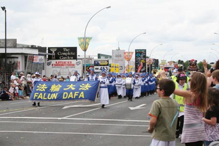 虽然奥克兰the Farmers圣诞游行基金会因与中共的利益关系而以各种借口拒绝法轮功学员参加该地区的圣诞游行,但是法轮功团体以其出色的表现,在其它各个地区的游行中受到人们的热情欢迎。