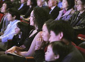 一对中国青年夫妇麦克和艾伦满脸笑容从剧场出来。艾伦女士说:“非常好,可以看出你们的苦心与努力,很有意义,晚会节目带来好的信息,传送给我们,我很清楚的知道这一点,我喜欢《济公抢亲》节目中的济公大师,抢亲救人之心,有时候我们生活的很迷惑,需要有人指点迷津。”她的丈夫麦克是工程师,他也表示:“神韵就象一股清清的流泉,给我们一些启示。”