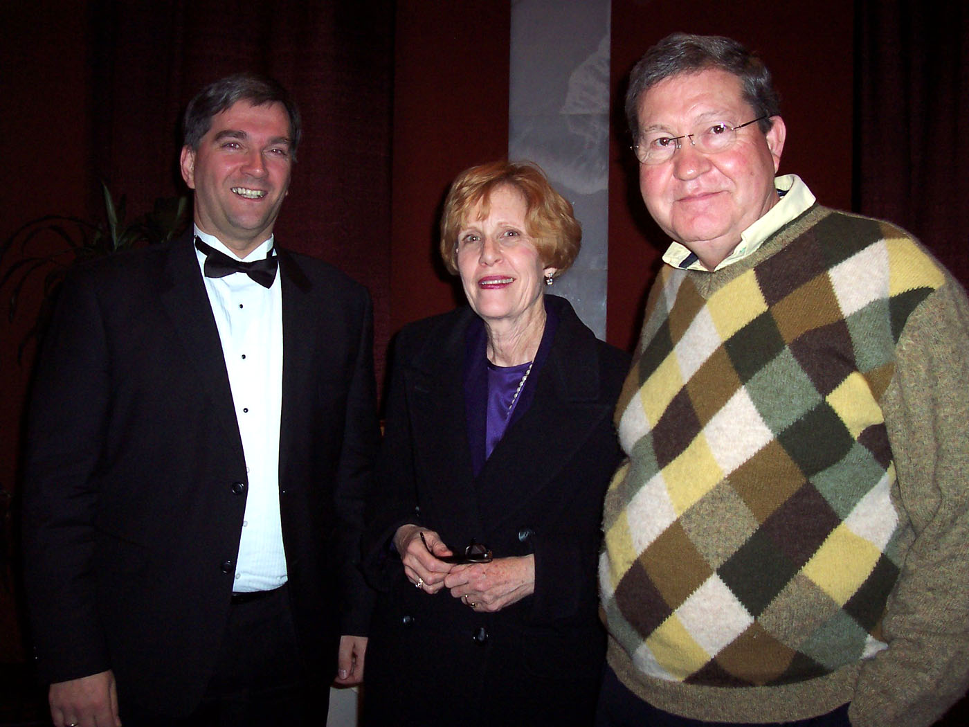 ![]() 资深媒体人卡罗斯(右)和太太南西(中)观看演出后,在贵宾酒会上与神韵艺术团乐队的英国管演奏家Torsten Trey(左)交谈甚欢。 |