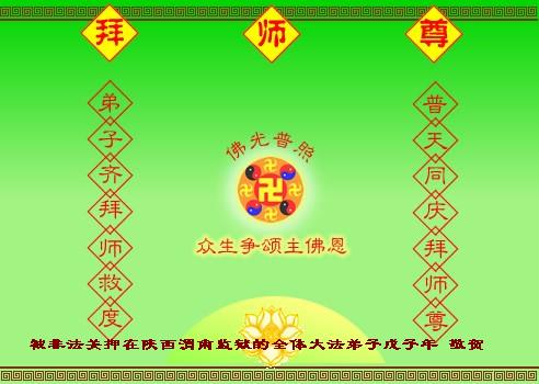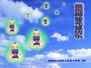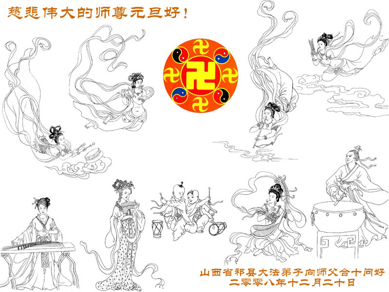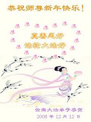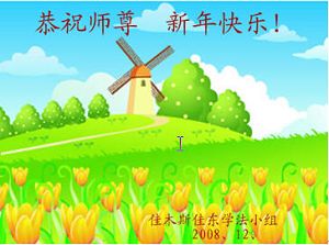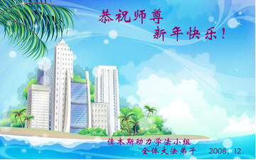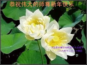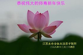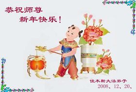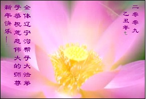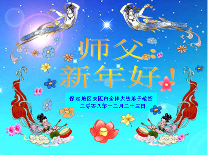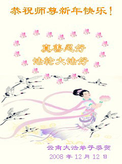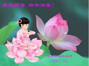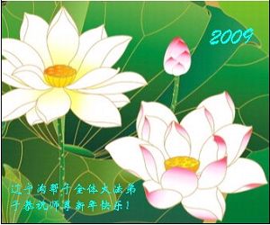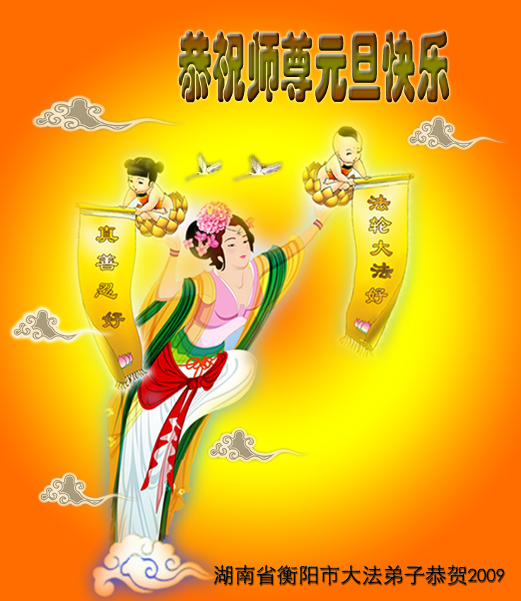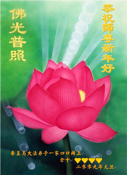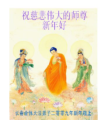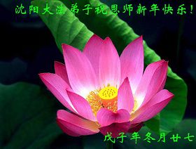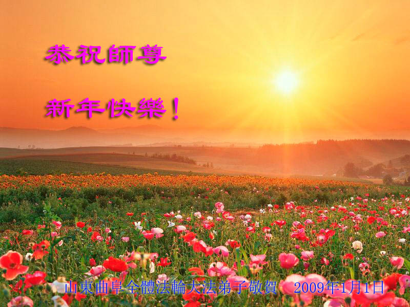 值此2009年新年来临之际,沈阳全体大法弟子恭祝师尊新年快乐!请师父放心,在新的一年里,沈阳全体大法弟子一定会做的更好,救人更多,路走的更正,不负师尊的苦度,不负众生的期待。