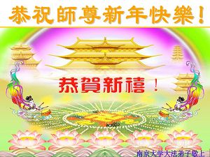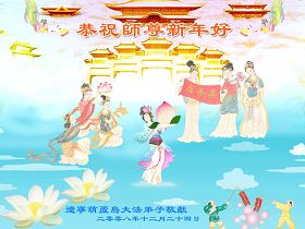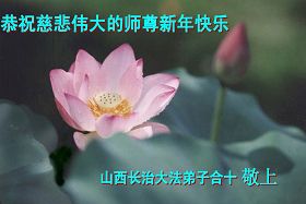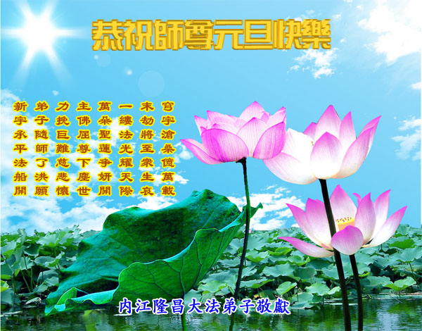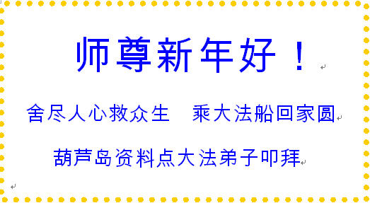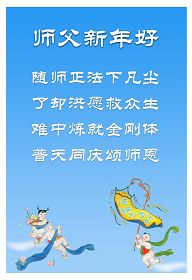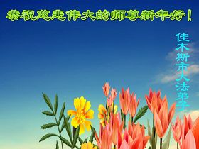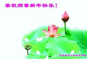 新年来临之际,怀着一份感激的心情,代表我们地区全体大法弟子向师父发出最衷心的祝愿:师父新年好!我们一定不忘师尊嘱托,努力做好三件事,救度更多众生!