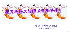 内蒙古乌兰察布市全体大法弟子向师父问好!恭祝慈悲伟大的师尊二零零九年新年快乐!