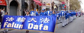 ![]() 天国乐团在喜剧广场演奏“法轮大法好” |