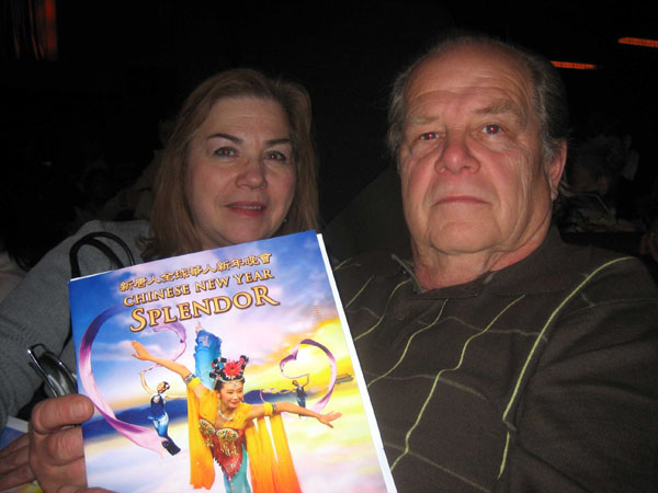 终场起立鼓掌的黛安(Dianne)任职于一家知名食品公司的亚洲顾问部门,她和丈夫彼得(Peter)第一次观赏全球华人新年晚会。她说,看了节目后深受启发(very inspiring),她喜欢《水袖》中曼妙的中国舞蹈。