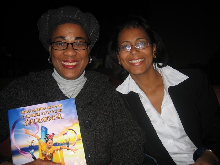 ![]() 加勒比海岛国St. Vincent & The Grenadines 驻纽约领事馆观光部Eleen Ackie(左)和纽约一非营利组织主席及总裁Vaughan Toney赞叹晚会很精彩,很感人。 |