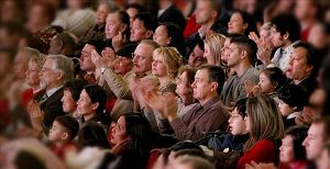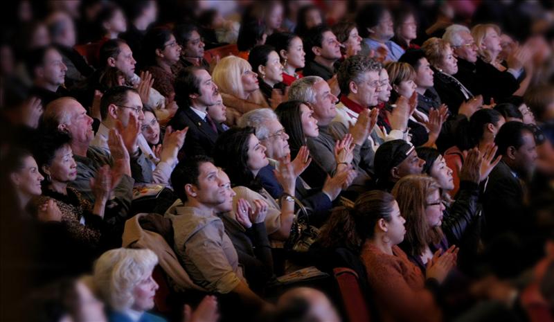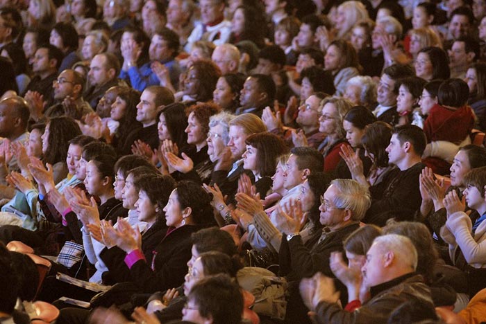 ![]() 二零零八年二月九日,纽约观众对神韵艺术团的新年演出报以热烈掌声 |