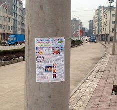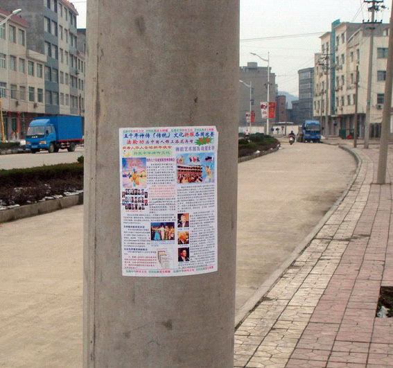 • 江西省九江县火车站附近多个楼道及电线杆出现宣传神韵晚会的不干胶