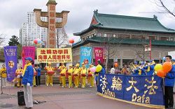 ![]() 温哥华法轮功学员表演的广场成为本次华埠庆新年活动的一个热门景点 |