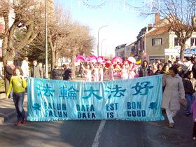 法轮功学员参加巴黎郊区中国新年游行(图)