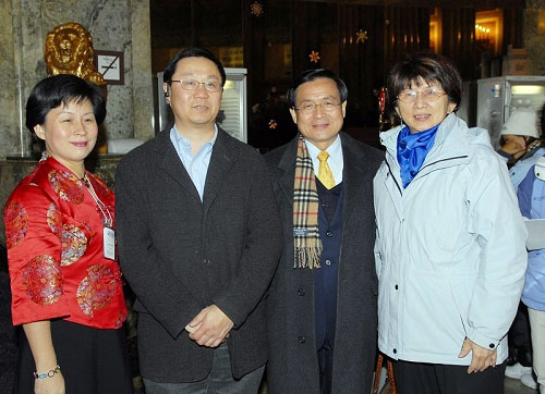 ![]() 台南市市长许添财在圣诞节当日到纽约百老汇碧肯剧院观看新唐人圣诞晚会。许添财市长(右二)和夫人(右一)与新唐人电视台总裁李综(左二)在碧肯剧场合影。 |