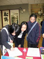 另外,来自石门国中的二年级学生黄暖、魏家玺和张萍三人也利用假日前来观赏,他们表示这是第一次了解法轮功受迫害的真相,小小年纪的他们在离开前签下呼吁制止迫害法轮功的联署签名。