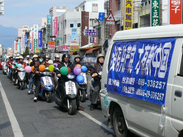 民众于集会后进行汽车、摩托车队大游行,从体育场出发,绕行台东主要的道路。沿途广播车告诉民众,声援中国的人权,中国人民就有希望,和平新世纪,需要每个人的正义支持。