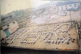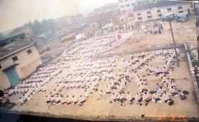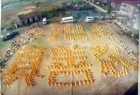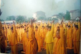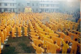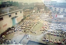 ![]() 一九九八年五月三日(皇历四月初八),武汉市新洲区约千名大法弟子在新洲区周铺镇中心中学炼功弘法,庆祝师尊生日快乐! |