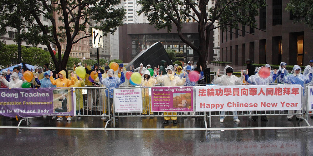 【明慧网二零零八年二月二十四日】(明慧记者王英、黄凯莉旧金山报导)旧金山一年一度的中国新年游行于二零零八年二月二十三日傍晚举行。该游行组织者中华总商会被很多人认为受中共操控,执行中共对法轮功的迫害政策,一再拒绝法轮功学员参加游行的申请。法轮功学员当天在游行现场向旧金山民众揭露中共的迫害,展示法轮功的美好,受到民众的欢迎。民众表示,法轮功学员做的对,我们支持他们。