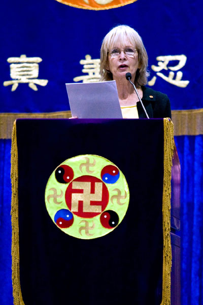 来自圣地亚哥的西方学员吉瑟拉•素默(Gilsela Sommer)在发言中她提到,从参加声援退党集会发言,到市议会上发言的过程中,她意识到这种害怕是对自我的一种强烈执着,其中包含怕犯错误,丢面子,担心会被别人嘲笑或责备;从而会害怕走出去面对面讲真相。她分享了在向政府部门讲真相过程中如何慢慢克服怕心的历程。