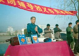 【明慧网二零零八年二月二十七日】一九九五年,山东蒙阴大法弟子在汶溪公园炼功洪法图片。