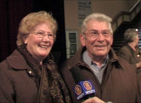 退休夫妇Herman Vermere和Lilian Vermere观看晚会后,两人你一言我一语争着谈观看晚会的感受。Herman说:“很精彩,服装很漂亮,效果很好。”