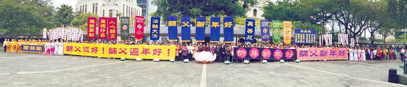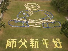 二零零八年一月十三日,来自台湾中部的法轮功学员,在岁次戊子的中国新年即将来临之际,齐聚中兴大学中兴湖旁绿茵草皮上,排成“发正念”的图形及“师父新年好”的大字,恭祝法轮功创始人李洪志师尊新年好。