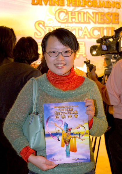护士蔡小姐对记者说:“有一天我发现有人在我们家的门口放了一张神韵艺术团的简介,简介上说这是一个全球的巡回演出,我觉得很难得,平常要看这样一个演出需要搭飞机花住宿费,今天就来到我们台南表演,于是我就打了卖票专线的电话,订了票就来看了!表演中有许多连续旋转的动作,他们一直这样转,这不是一下子就可以会的,一定下了很大功夫。还有《大唐鼓吏》节目中的鼓声十分震撼,他们真的表演的很好!”