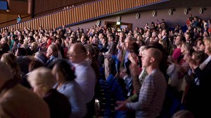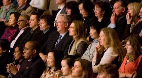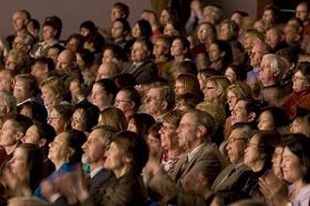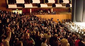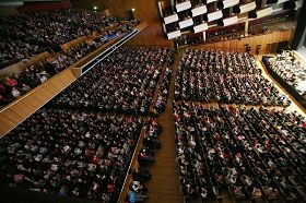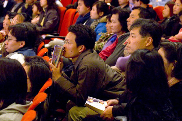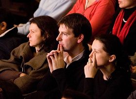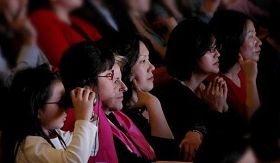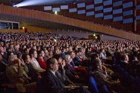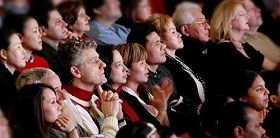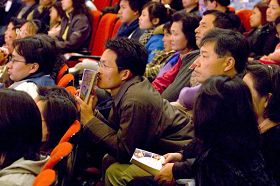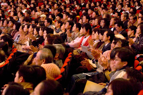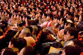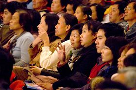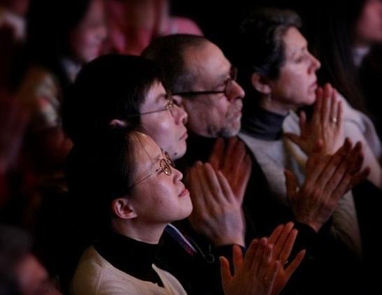 ![]() 二月二十九日,“神韵巡回艺术团”在法国巴黎国际会议中心的演出大厅拉开了四场神韵晚会的首场序幕,观众聚精会神的观看神韵演出。 |