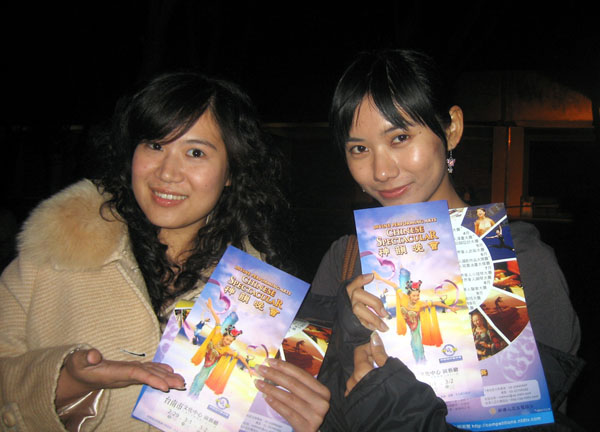 观众中有两位德国青年,他们也非常喜欢神韵的演出。