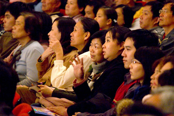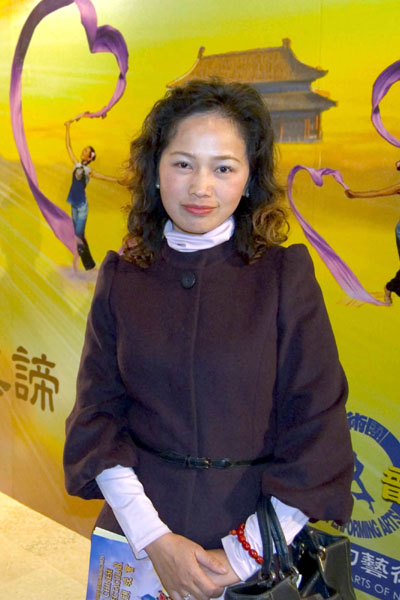 圣功女中的老师王之敏带着孩子一同来观赏晚会,她说透过神韵演出的故事让孩子更了解中国文化。王之敏说:“我觉的演出非常感人,把我们中国文化的精髓都表现出来了,尤其是小朋友也许对中国故事不太了解时,看这个表演对他们了解历史故事会很有帮助。”